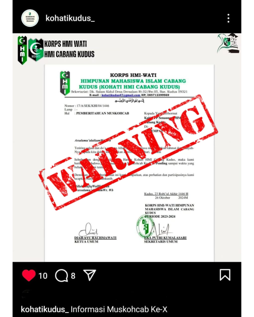 Siang ini, 27 Oktober 2024 kohati kudus memposting pengumuman di akun Instagram @kohatikudus_ bahwa m...